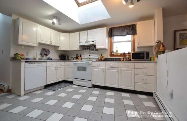APL95025613 - Fantastic deal on this top-floor sunny spacious three-bedroom for 9/1. Fantastic open layout, large windows allowing for maximum natural light. Updated kitchen and large, even bedrooms! Great closet space. Skylight. SUPER easy in and out of the city using the Mass Pike (90) and Storrow Drive! Available 9/1/25. A one-month broker fee applies. Contact Dan for a showing, thank you!