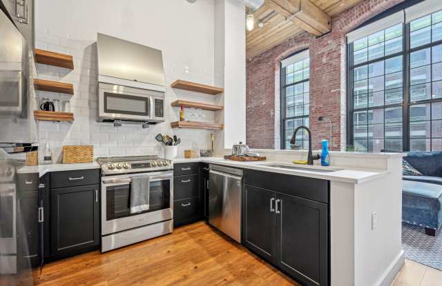 When designing these studios, one, two, and three-bedroom residences, we made sure to maintain the allure of our historic building while infusing it with modern luxury. This is mirrored in every detail, from the exposed brick walls and 16 ft. ceilings to the gourmet kitchens with stainless-steel appliances and granite or quartz countertops. Other highlights you’ll love are the 12 ft. windows that fill the rooms with natural light as well as the loft mezzanine-style homes that take your experience to new heights.