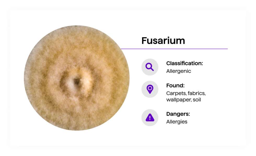 Fusarium is a frequent garden invader that can also sneak indoors and settle into carpet fibers, wallpaper, or fabric in damp, poorly ventilated spaces. It’s often pink, white, or even reddish-purple and spreads quickly across porous surfaces. When it grows in apartments, it can cause allergies and structural issues when ignored, so don’t let its soft pastel colors fool you; it’s persistent and causes mass destruction.