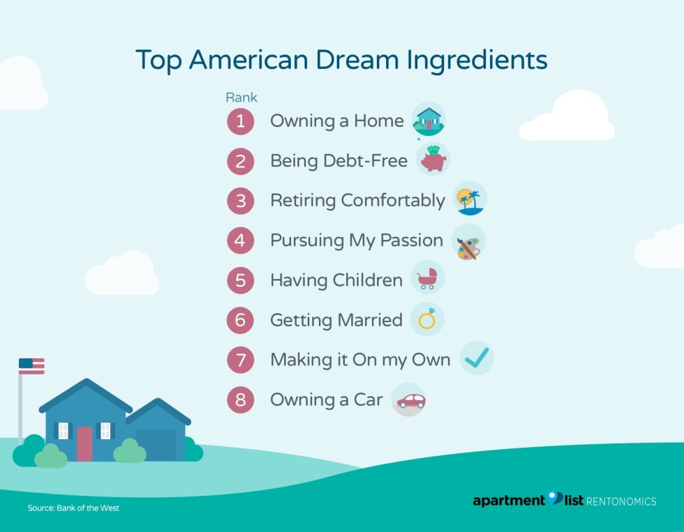 But what does that mean for America today- a nation that has seen significant recovery of the housing market for both homeowners and renters? A recent report polled Americans on the “top ingredients” of the American Dream and found that these inputs are: