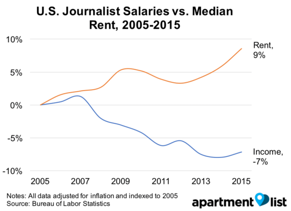 Reporter salaries have fallen 7% while rents have risen 9%